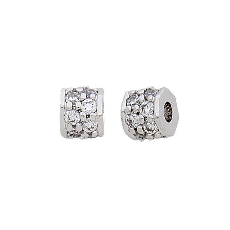 Small Hexagon Bead w/Cubic Zirconia (CZ) - Sterling Silver Rhodium Plated