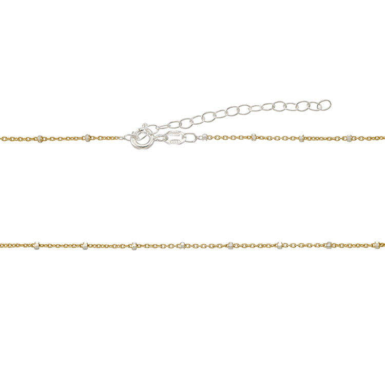 Satellite chain - 1.07 mm cable chain with 1.64mm 8 sided diamond cut sterling silver bead 16" plus 2" extension - Sterling Silver Gold Plated