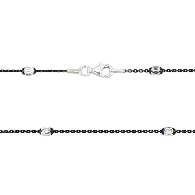 Satellite Chain with Oval Diamond Cut Beads 20" with lobster - Sterling Silver Ruthenium Plated