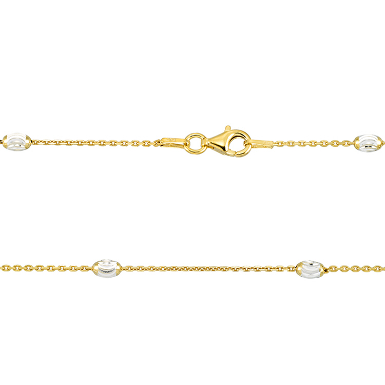 Satellite Chain with Oval Diamond Cut Beads 20" with lobster - Sterling Silver Gold Plated