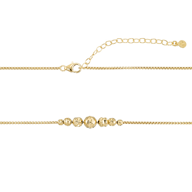 1.2mm Round Box Chain with graduated 5 beads 6" with 1" extension with lobster - Gold Filled