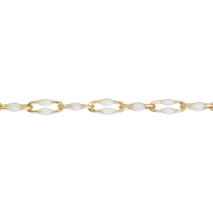White Enamel Chain 2.2 x 2.6mm with 2.1mm 3 paper clip links - Gold Filled