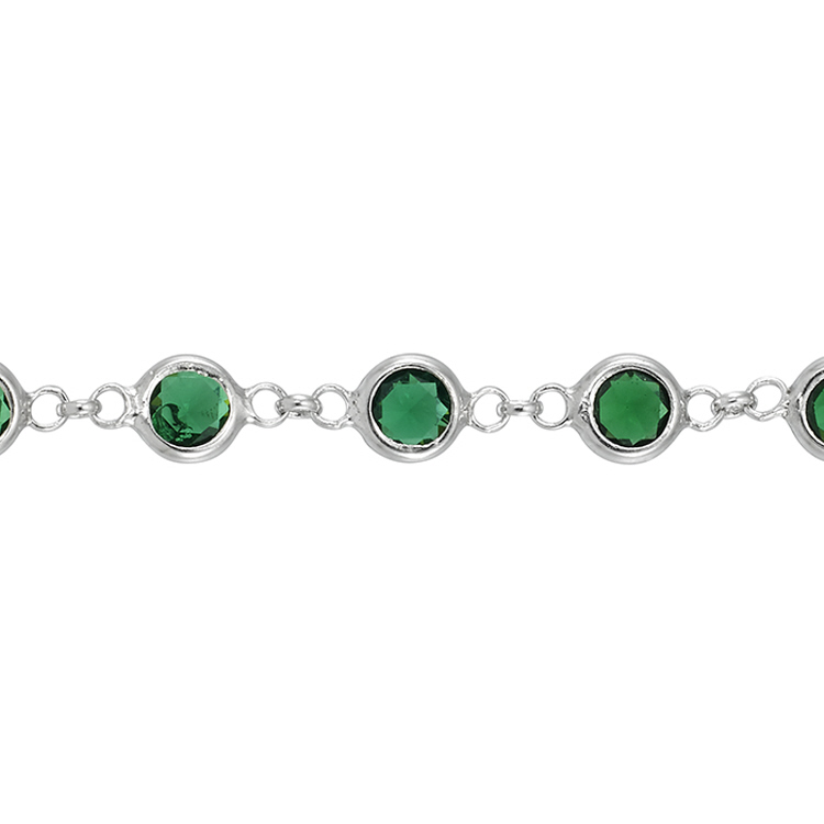 1.6mm Cable Chain with 4.5mm Round Emerald CZ - Sterling Silver Rhodium Plated
