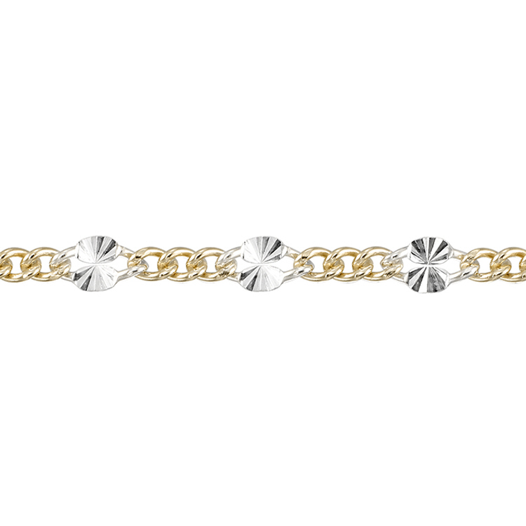 Sterling Silver Starburst 2.2mm x 2.6mm chain with 3 2.3mm gold filled curb links - Two Tone