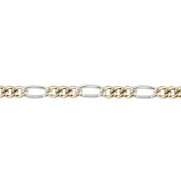 Figaro Chain 2.4 x 5.8mm - Two Tone Sterling Silver Gold Filled