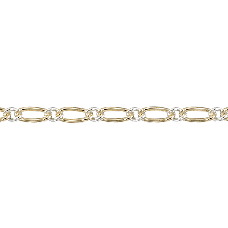 Figaro Chain with three 1.7 x 3.6mm Gold Filled links and 1.3mm five short Sterling Silver links - Two Tone