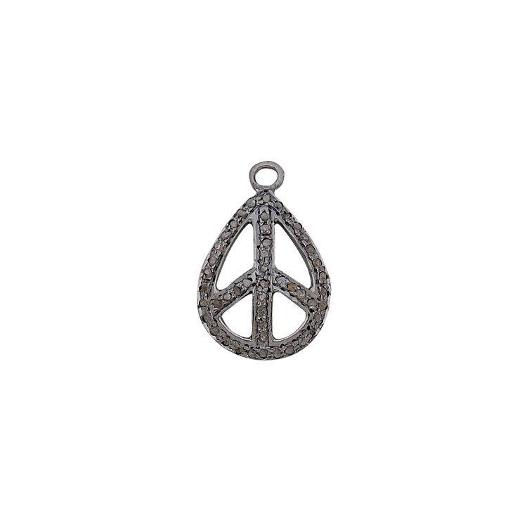 Pave Diamond Peace Sterling Silver Antique Finish 25 x 16mm