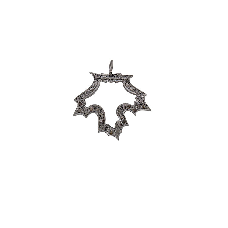 Pave Diamond Leaf - Sterling Silver Antique Finish