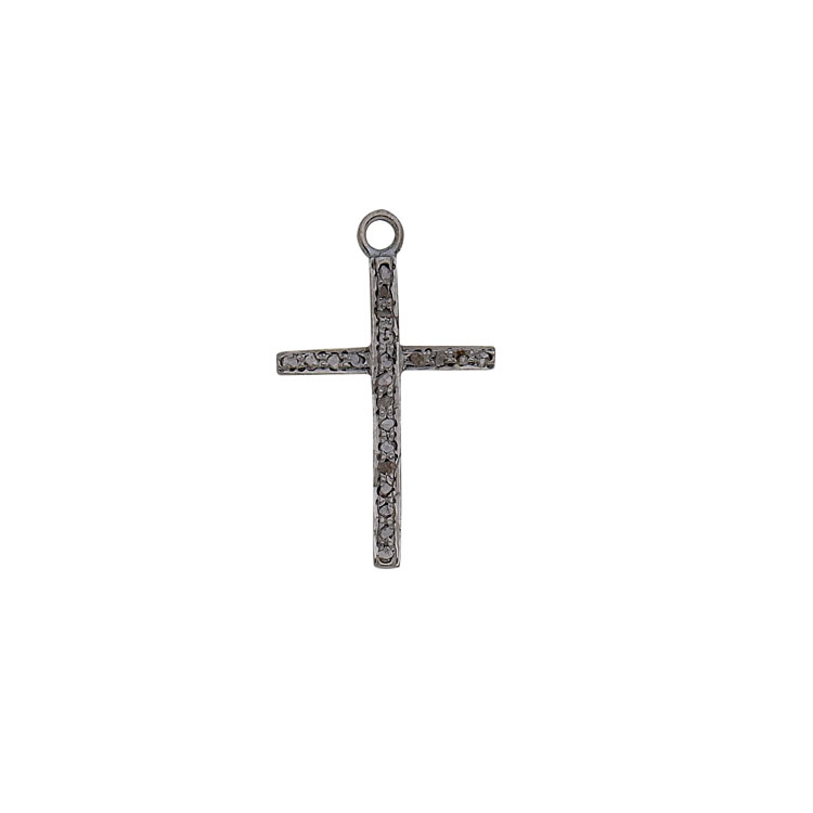 Pave Diamond Small Cross - Sterling Silver Antique Finish
