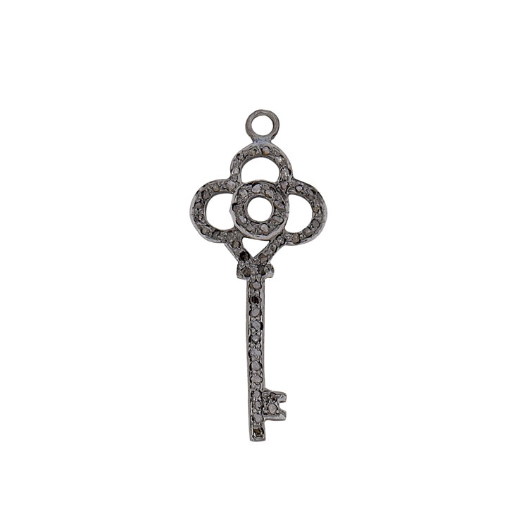 Pave Diamond Key Charm Sterling Silver Antique Finish 41 x 16.5mm