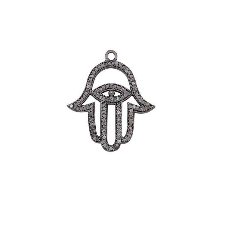 Pave Diamond Hamas 29x25mm - Sterling Silver Antique Finish