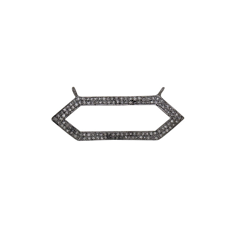 Pave Diamond Hexagonal Charm with two rings Sterling Silver Antique Finish 14 x 37mm