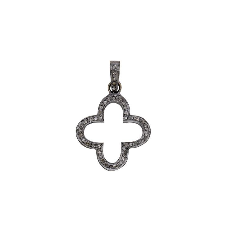 Pave Diamond Flower Charm Sterling Silver Antique Finish 30 x 21mm