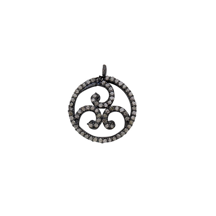 Pave Diamond Round Charm with design Sterling Silver Antique Finish 23 x 20mm