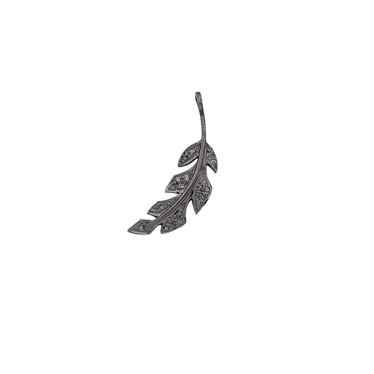 Pave Diamond Slanted Leaf Charm Sterling Silver Antique Finish 16.5 x 9mm