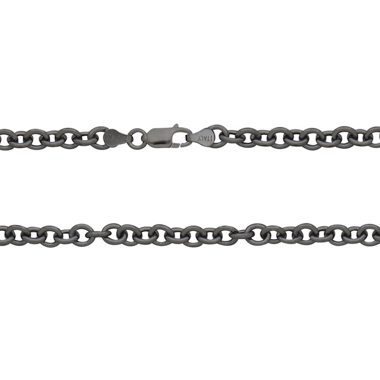 Cable Chain 5.1mm 24" with lobster - Sterling Silver Black Rhodium Plated
