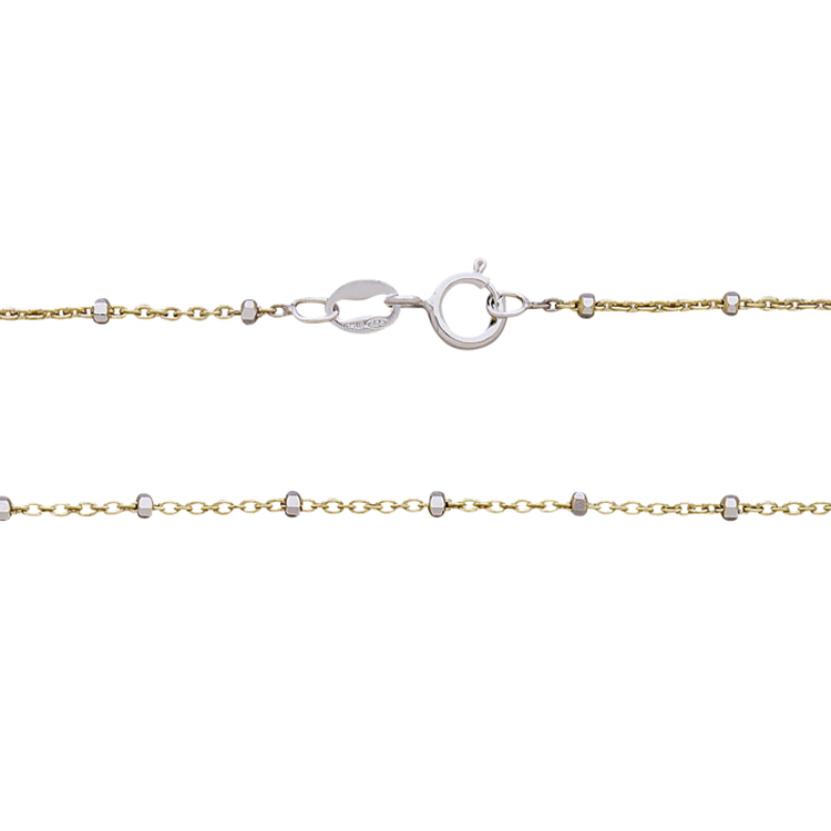Satellite chain - 1.07 mm cable chain with 1.64mm 8 sided diamond cut sterling silver bead - Sterling Silver Gold Plated