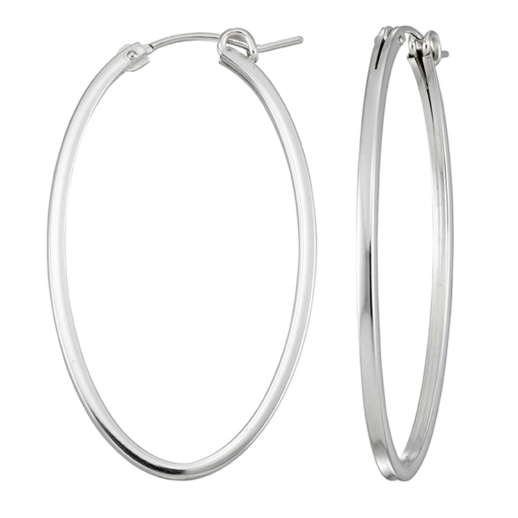 Oval Hoop Earrings 2 x 34mm - Square Wire - Sterling Silver