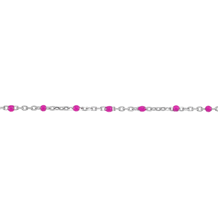 Enamel Chain 1.3mm with 2mm Fushcia Round Enamel - Sterling Silver Rhodium Plated