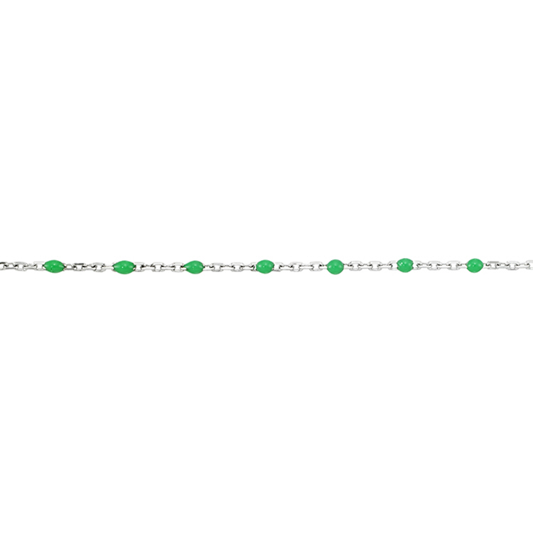 Enamel Chain 1.3mm with 2mm Green Round Enamel - Sterling Silver Rhodium Plated
