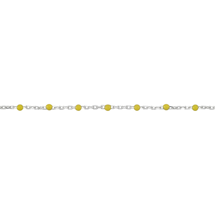 Enamel Chain 1.3mm with 2mm Yellow Round Enamel - Sterling Silver Rhodium Plated