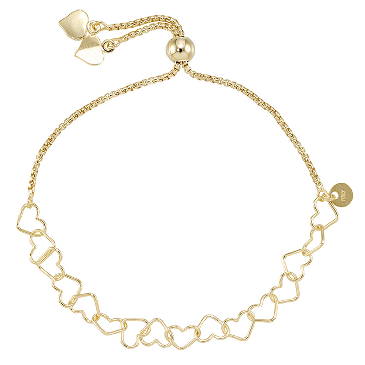 5.7mm Heart 9" Adjustable Bolo Bracelet - Sterling Silver Gold Plated with anti tarnish
