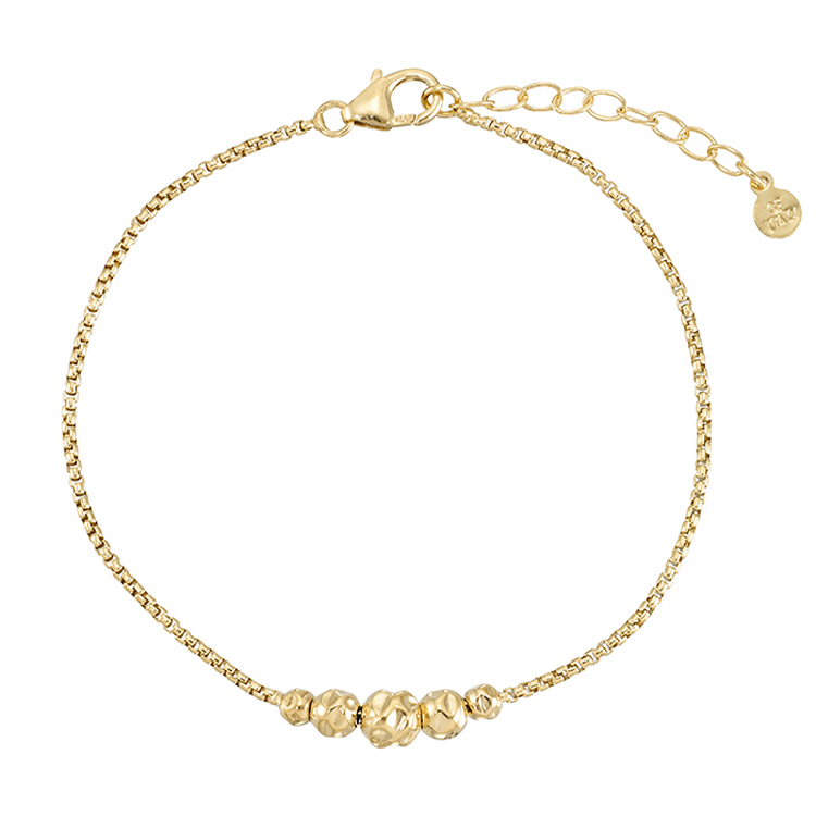 1.2mm Round Box Chain with graduated 5 beads 6" with 1" extension with lobster - Gold Filled