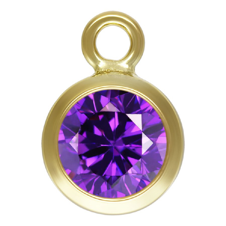 4.0mm Amethyst/February Birthstone 3A CZ Bezel Drops/Charms (3 pcs) - Gold Filled