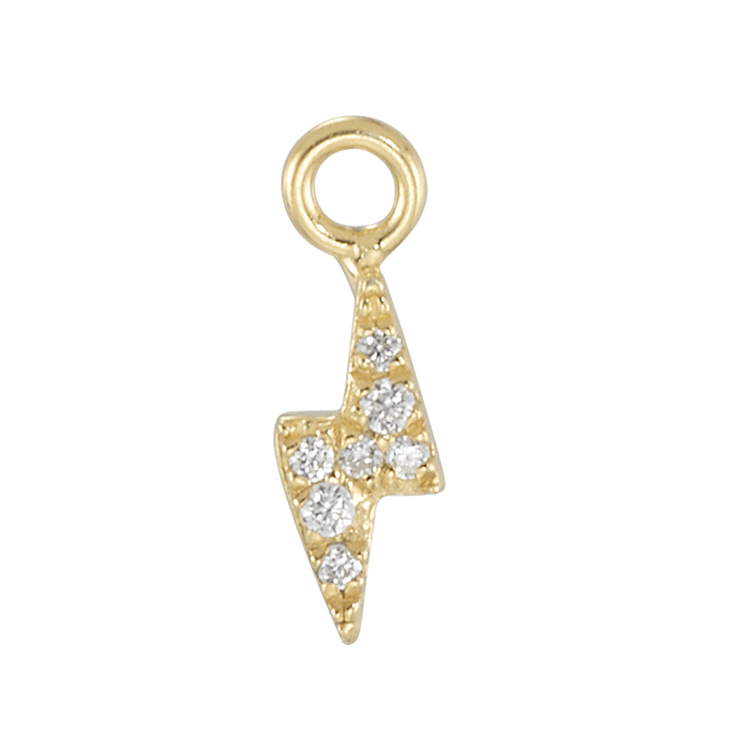 Lightning 10.7x3.3mm Charms with Cubic Zirconia (CZ) - Sterling Silver Gold Plated
