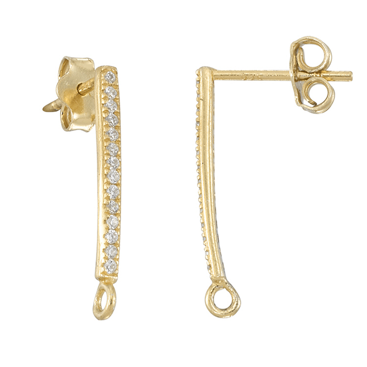 Post w/Ring 18.9mm with Cubic Zirconia (CZ) - Sterling Silver Gold Plated