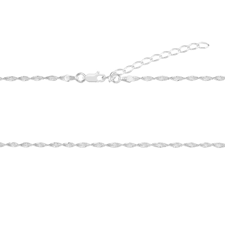 2.2mm Twisted Herringbone Chain 16" with 2" extension with lobster - Sterling Silver with anti tarnish