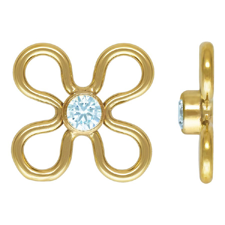 7.5mm Flower Connectors 2mm Aquamarine CZ (Cubic Zirconia) - Gold Filled