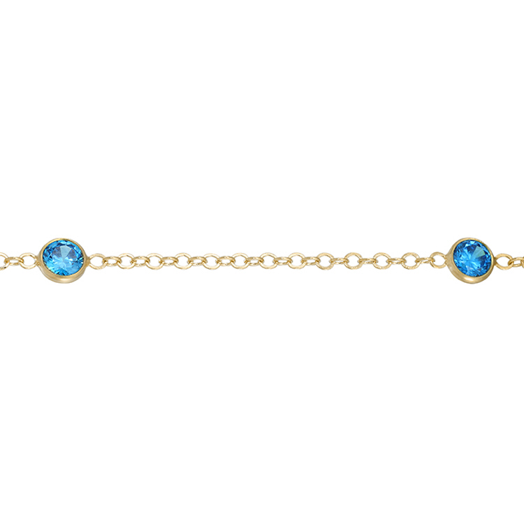 CZ Chain 2.3 x 3mm with 4mm Aqua Blue CZ - Gold Filled