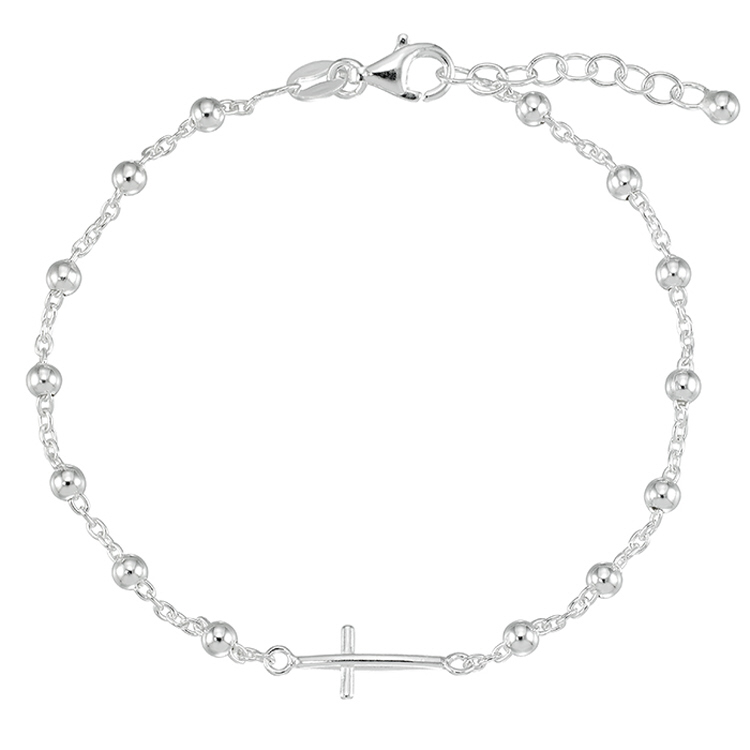 Cross Bracelet 7" plus 1" extension with lobster anti tarnish - Sterling Silver
