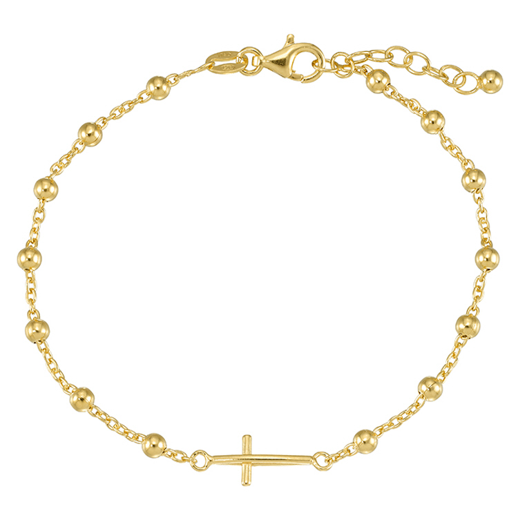 Cross Bracelet 7" plus 1" extension with lobster anti tarnish - Sterling Silver Gold Plated