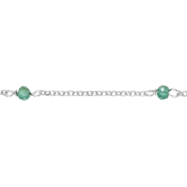3.5mm Green Agate bead with 1.6mm Cable Chain - Sterling Silver Rhdoium Plated