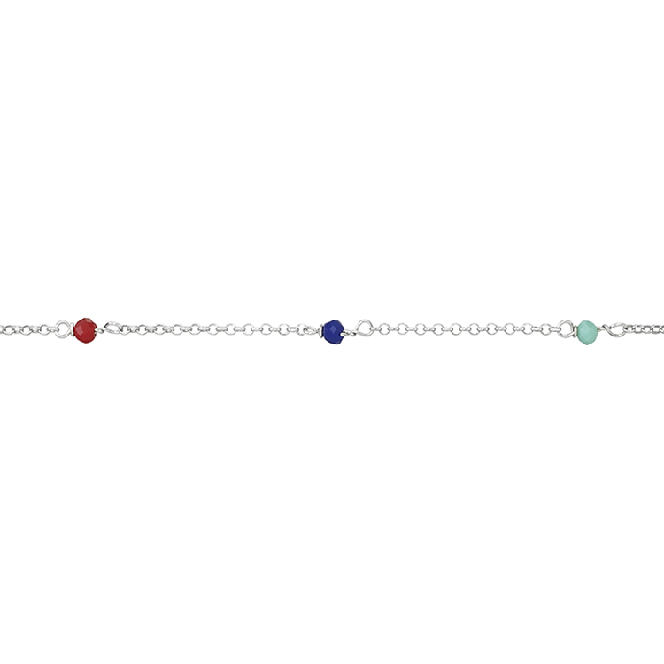 3.5mm Multi Colored Agate beads with 1.6mm Cable Chain - Sterling Silver Rhodium Plated