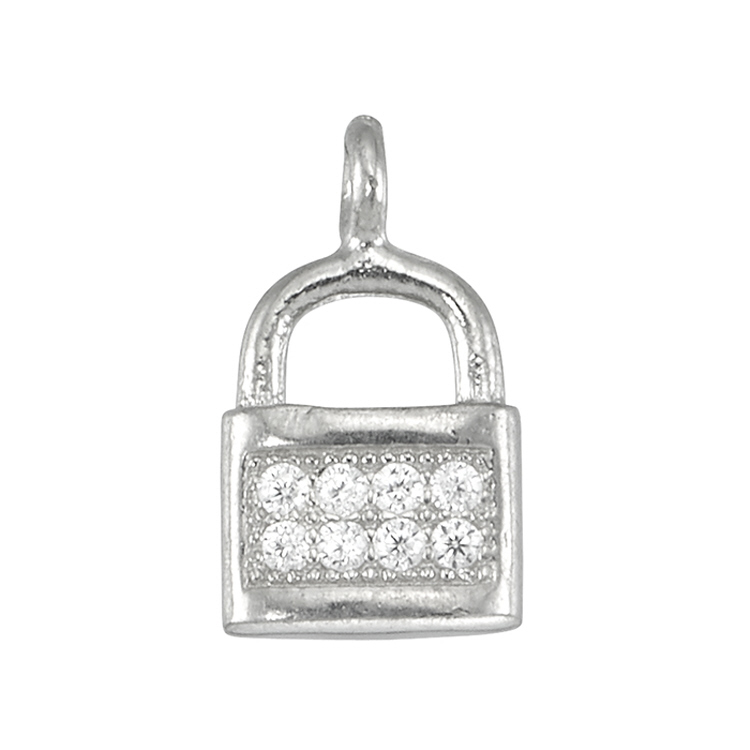 Lock - 6.4 x 11.2mm w/Cubic Zirconia (CZ) - Sterling Silver Rhodium Plated