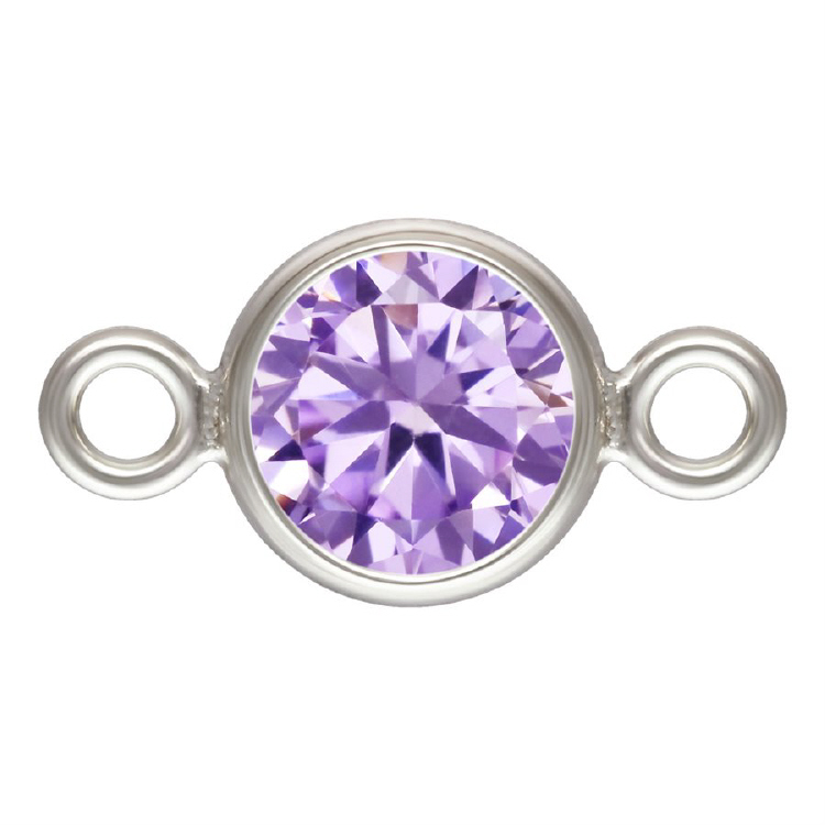 4.0mm Lt. Amethyst/June Birthstone 3A CZ Bezel Connectors (3 pcs) - Sterling Silver