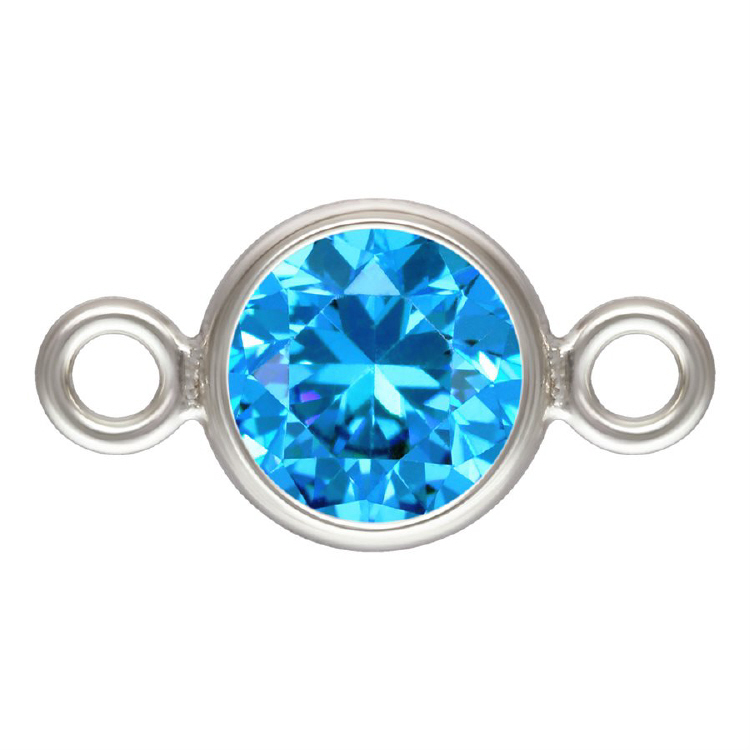 4.0mm Aqua Blue/September Birthstone 3A CZ Bezel Connectors (3 pcs) - Sterling Silver