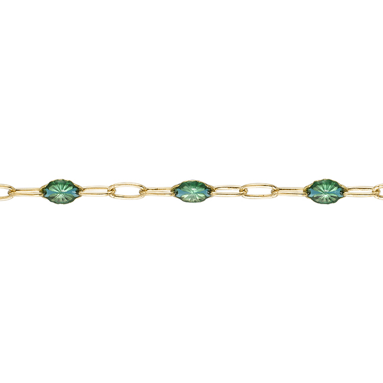 Green Enamel Chain 2.2 x 2.6mm with 2.1mm 3 paper clip links - Gold Filled