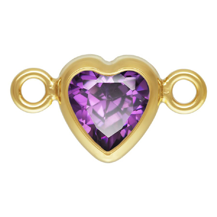 4.0mm Amethyst/February Birthstone 3A CZ Heart Bezel Connectors (3 pcs) - Gold Filled
