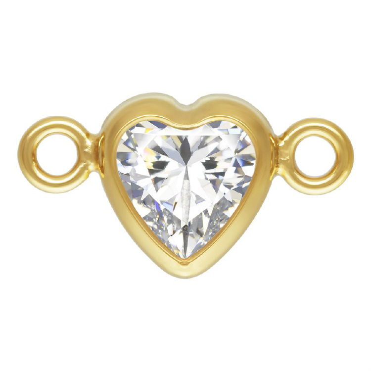 4.0mm White/April Birthstone 3A CZ Heart Bezel Connectors (3 pcs) - Gold Filled