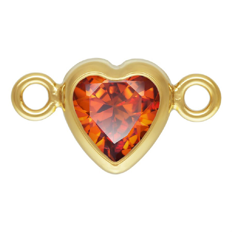 4.0mm Ruby/July Birthstone 3A CZ Heart Bezel Connectors (3 pcs) - Gold Filled