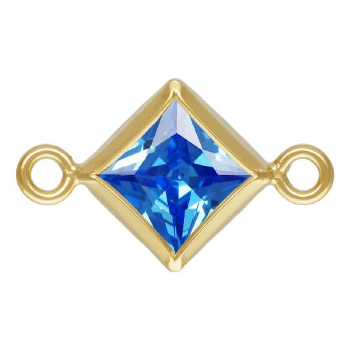 4.0mm Aqua Blue/September Birthstone 3A CZ Square Bezel Connectors (3 pcs) - Gold Filled