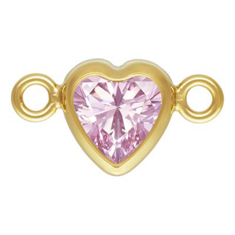 4.0mm Pink/October Birthstone 3A CZ Heart Bezel Connectors (3 pcs) - Gold Filled