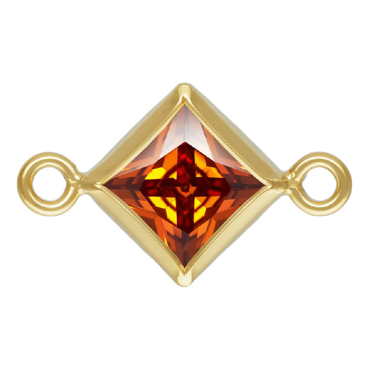 4.0mm Ruby/July Birthstone 3A CZ Square Bezel Connectors (3 pcs) - Gold Filled