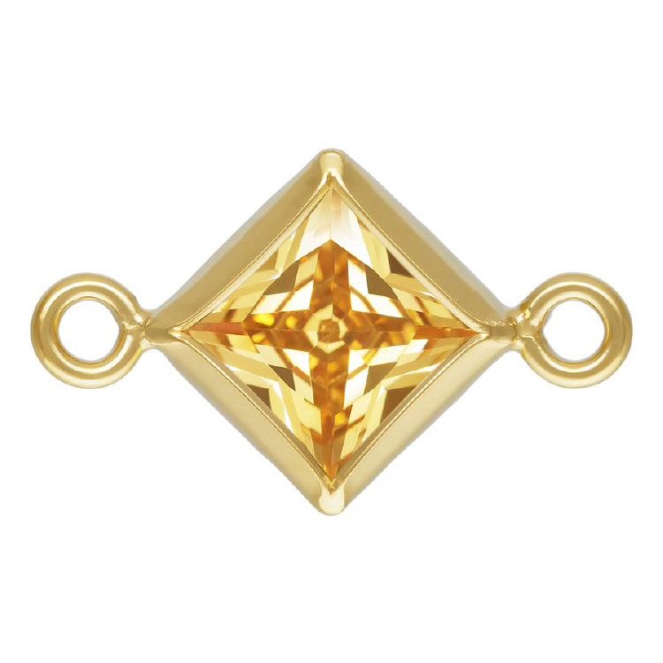 4.0mm Champagne/November Birthstone 3A CZ Square Bezel Connectors (3 pcs) - Gold Filled