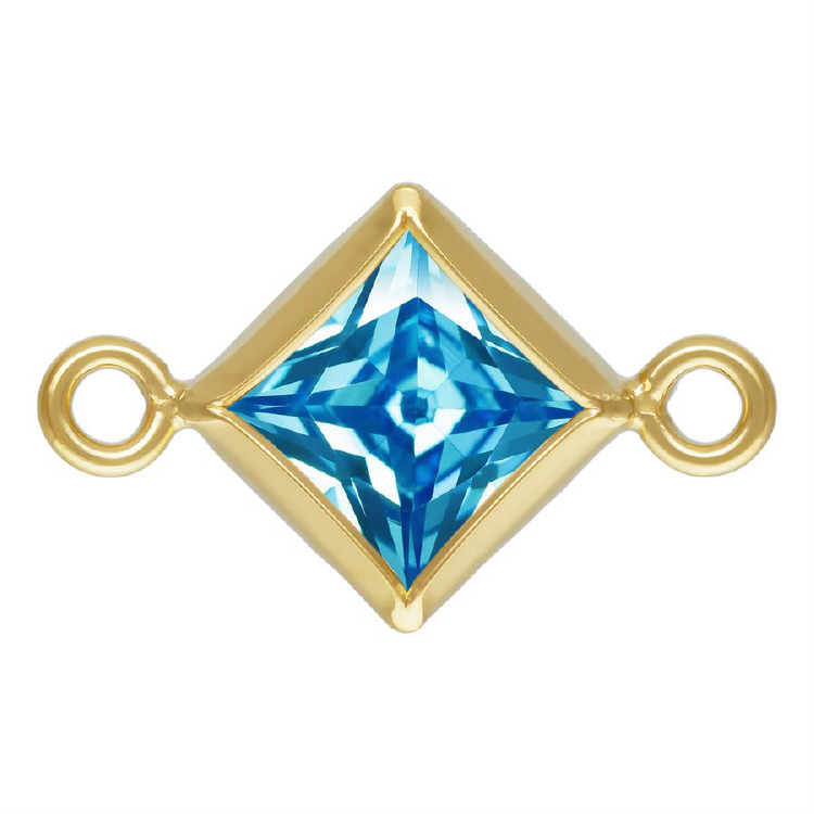 4.0mm Swiss Blue/December Birthstone 3A CZ Square Bezel Connectors (3 pcs) - Gold Filled