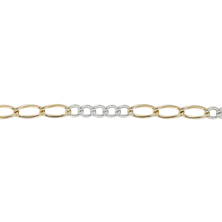 Figaro Chain 2.4 x 5.8mm - Two Tone Sterling Silver Gold Filled